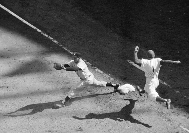 John G. Zimmerman (1927–2002) captured Brooklyn Dodger Pee Wee Reese beating out the throw to New York Yankees first baseman Joe Collins in Game 1 of the World Series for Sports Illustrated on Oct. 2, 1956. As told to Linda Zimmerman, daughter of the late photographer: