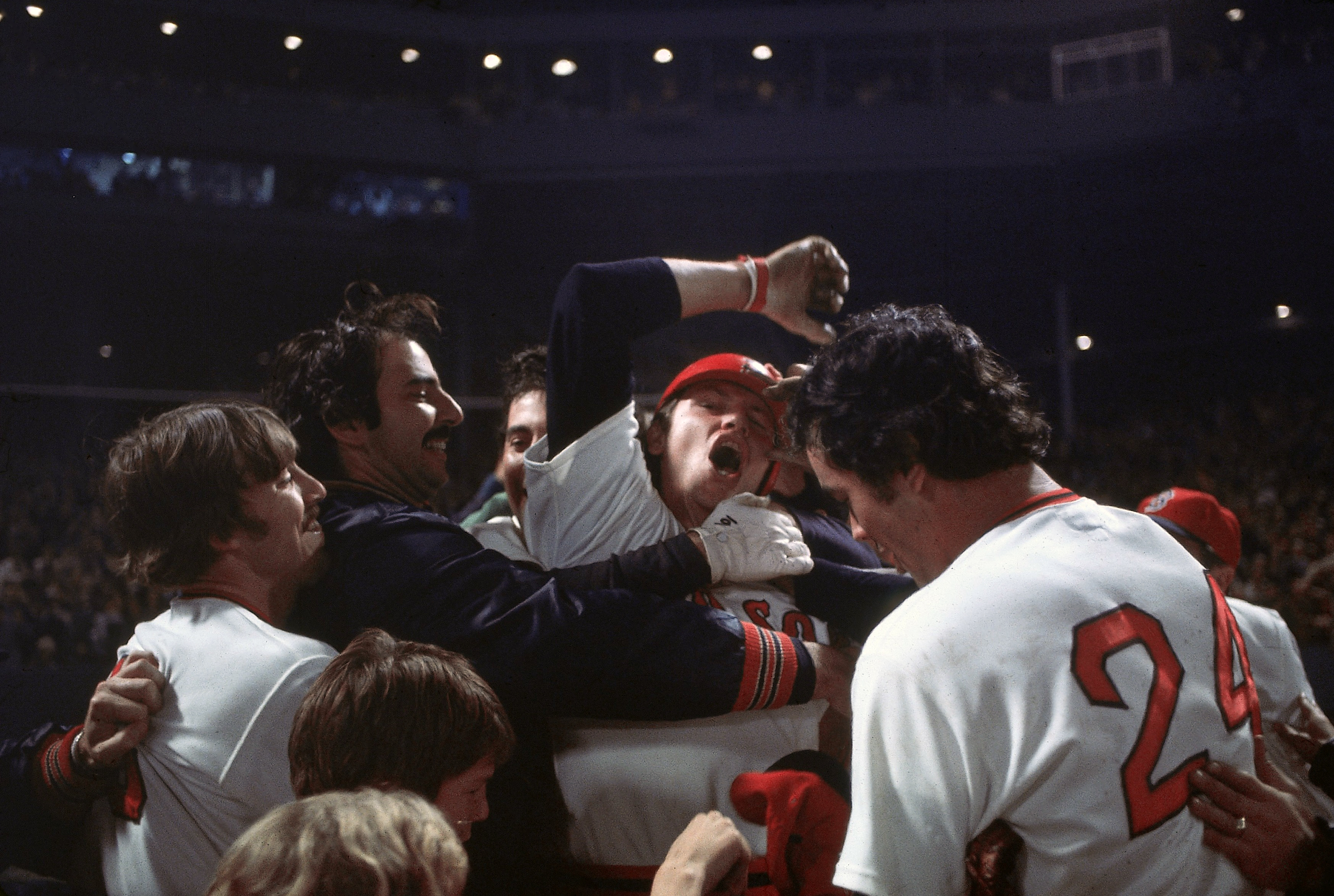Heinz Kluetmeier shot this photograph of Red Sox catcher Carlton Fisk celebrating after hitting a walk-off home run in the 12th inning at Fenway Park in Game 6 of the World Series for Sports Illustrated on Oct. 21, 1975: