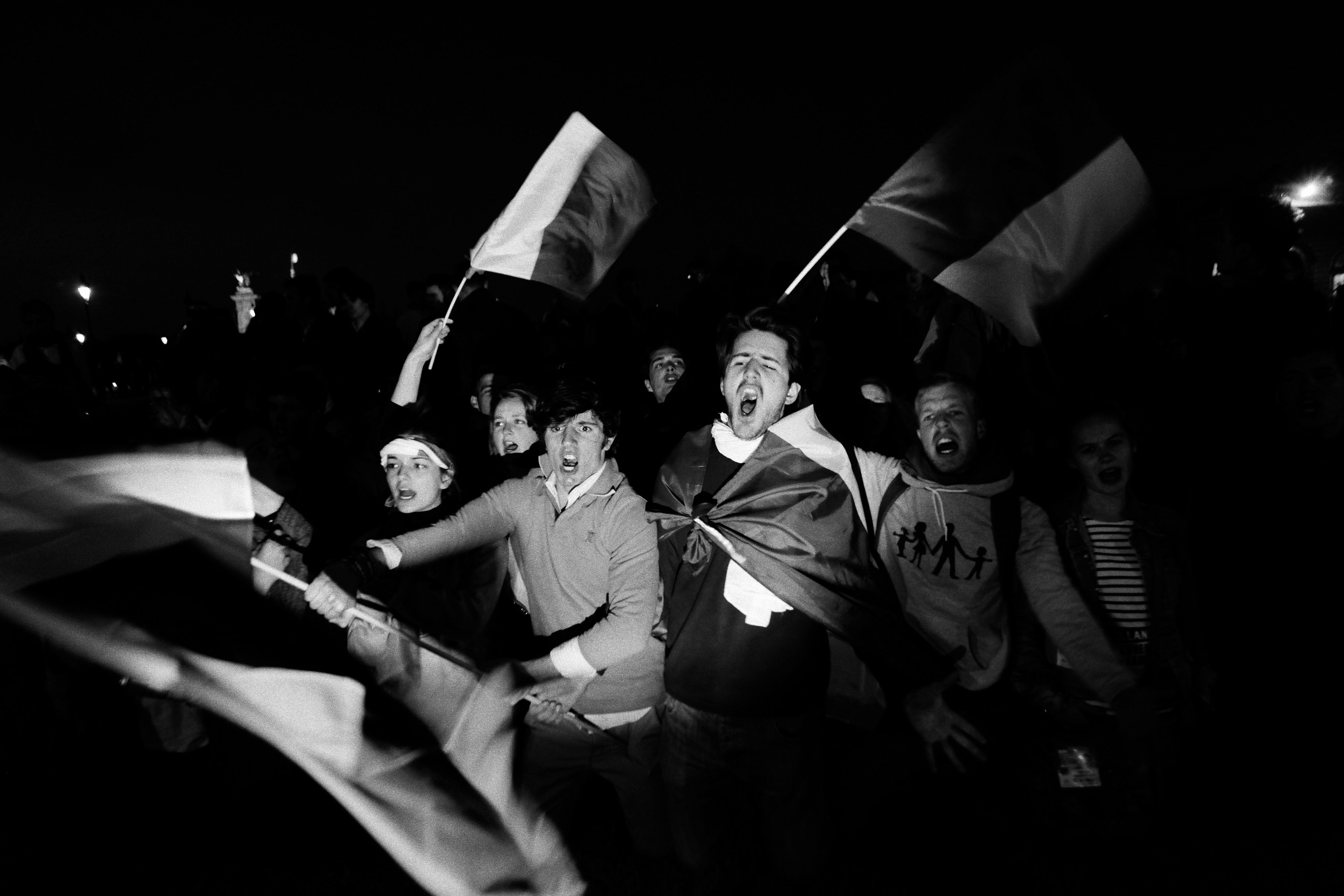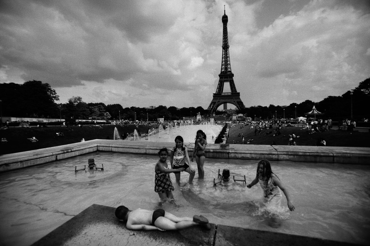 Among his photographs are moments of tension (in one, for example, a victim of the attack on the Bataclan is evacuated as bystanders look in shock) but also moments of communion: one photograph shows people united against terror while another celebrates France’s joie de vivre as kids play in the shadow of the Eiffel Tower.