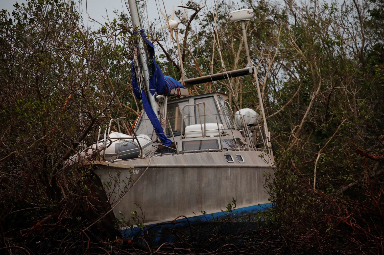 A damaged boat is seen on the mangles after the area was hit by Hurricane Maria in Salinas, Puerto Rico on Sept. 21. Carlos Garcia Rawlins—Reuters