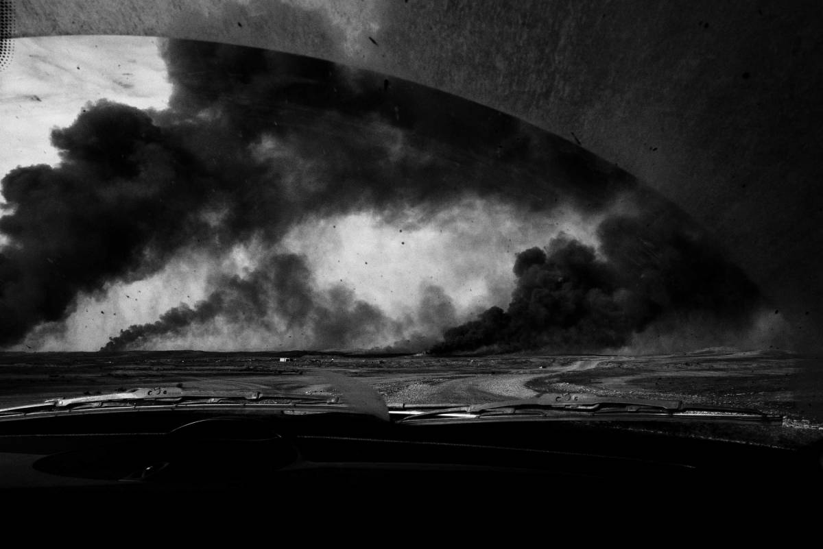 Elias’ images are a throwback to the first Gulf War, when a retreating Saddam Hussein set Kuwait’s oil fields on fire. “The antagonists are different, but everything else is the same,” he says. “I wanted these images to form part of this ongoing story.”