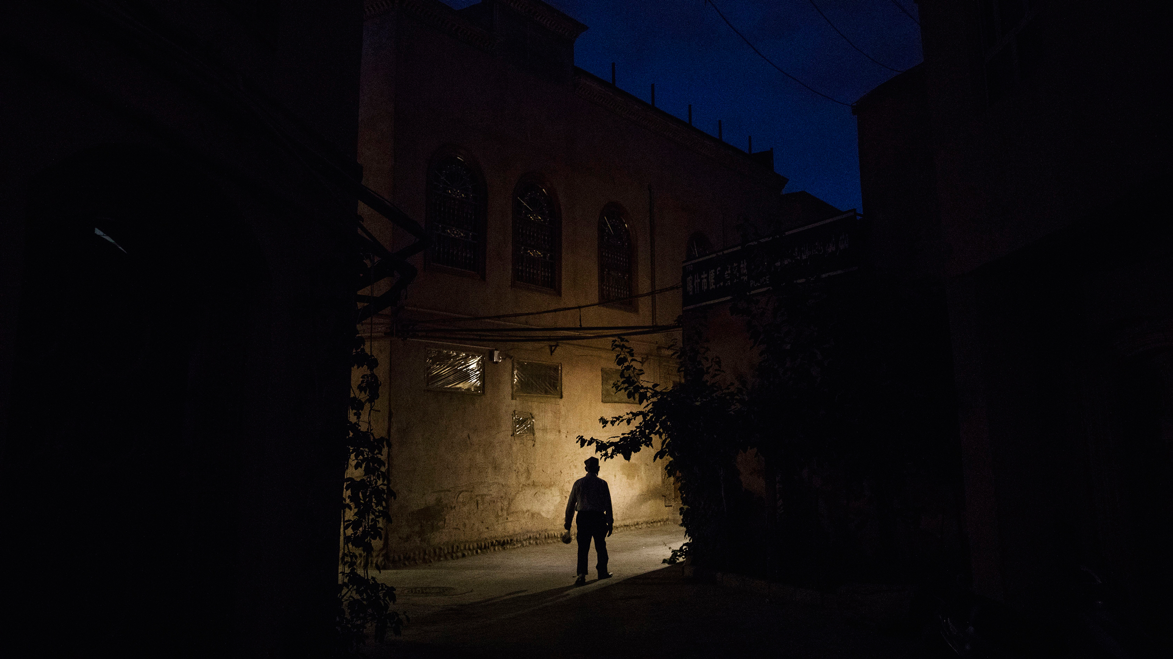 An ethnic Uyghur man walks in an alleyway in the old town of Kashgar on June 27.