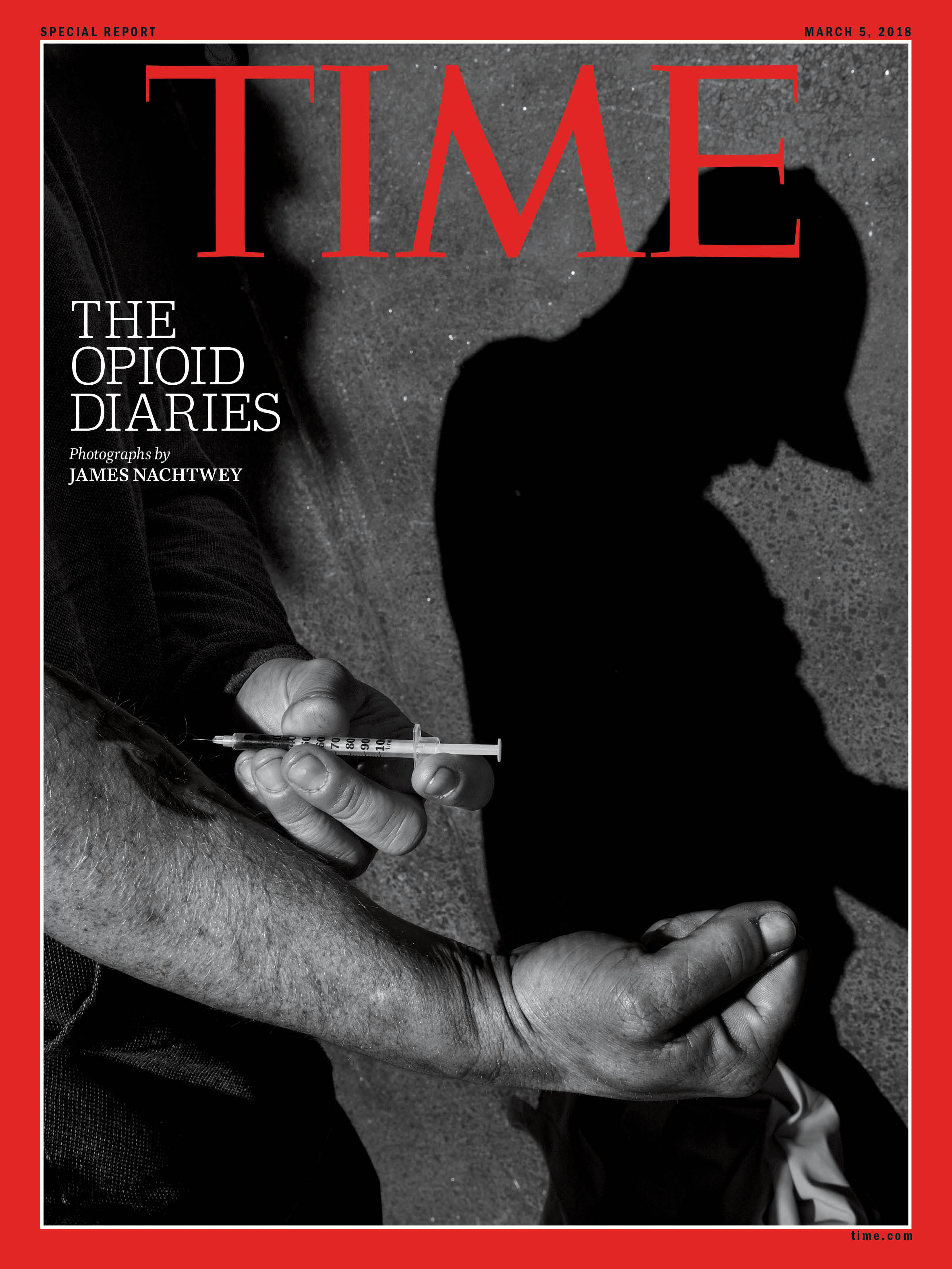 The opioid crisis is the worst addiction epidemic in U.S. history. Drug overdoses kill nearly 64,000 people per year, and the nation’s life expectancy has fallen for two years in a row. But statistics alone can’t tell the story. TIME commissioned veteran conflict photographer James Nachtwey to document this crisis over the past year through the people living it every day. Along with TIME’s deputy director of photography, Paul Moakley, Nachtwey traveled across the country gathering stories from users, families, first responders and others at the heart of the epidemic. On the pages that follow, his images are paired with voices from Moakley’s interviews, which have been edited. The result is the Opioid Diaries, the first issue in our 95-year history devoted entirely to one photographer’s work. This is a visual record of a national emergency–and it demands our urgent attention.