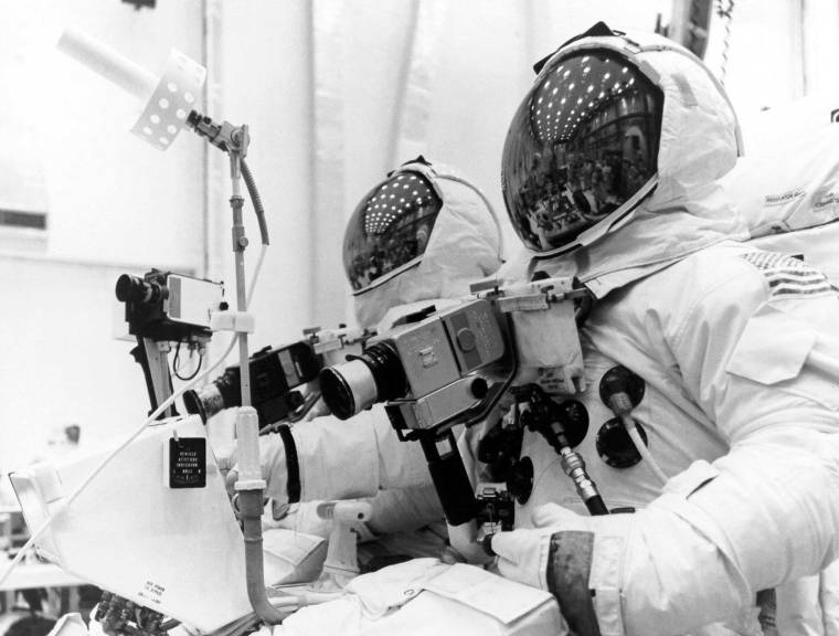 Taking good pictures is never easy. It’s harder when you’re mummified in a spacesuit that includes gloves that eliminate nearly all dexterity. And it’s harder still when you’re doing some of that photographic work while jouncing along in a lunar rover. For that reason, Apollo crews spent a lot of time practicing, as Apollo XVI’s John Young (right) and Charlie Duke did not long before their April 16, 1972 liftoff.