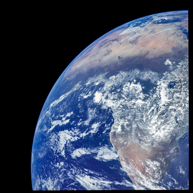 The gray-white moon had nothing on the riot of color that is the Earth, and the astronauts felt the pull of the home planet throughout their trip. The closer they came on their return journey, the more the Earth loomed. In a striking image taken by Apollo 17, almost the entirety of Africa is visible, with the southern portion of the continent at the bottom of the frame and the vast expanse of the Sahara Desert at the top.