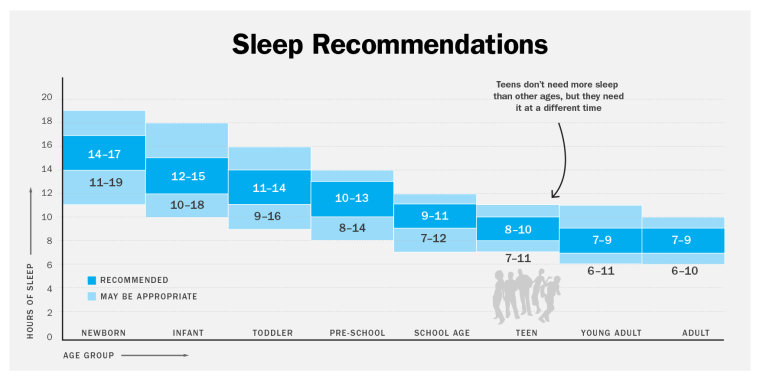 That’s why advocacy groups, administrators and recently the American Academy of Pediatrics (AAP) have started to push for high schools to delay their start times so that students get more shuteye. In an August 2014 policy statement, the AAP said it supports middle and high schools adopting delayed start times (that is, no earlier than 8:30 a.m.) to allow teens to get the recommended hours of sleep a night (eight to 10), to improve their physical and mental health, safety, academic performance and quality of life. “[The] research indicates that the average teenager in today’s society has difficulty falling asleep before 11:00 p.m. and is best suited to wake at 8:00 a.m. or later,” the statement reads.